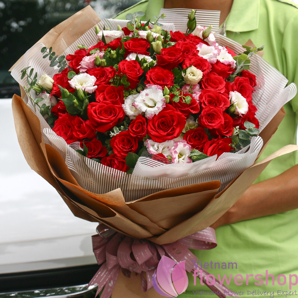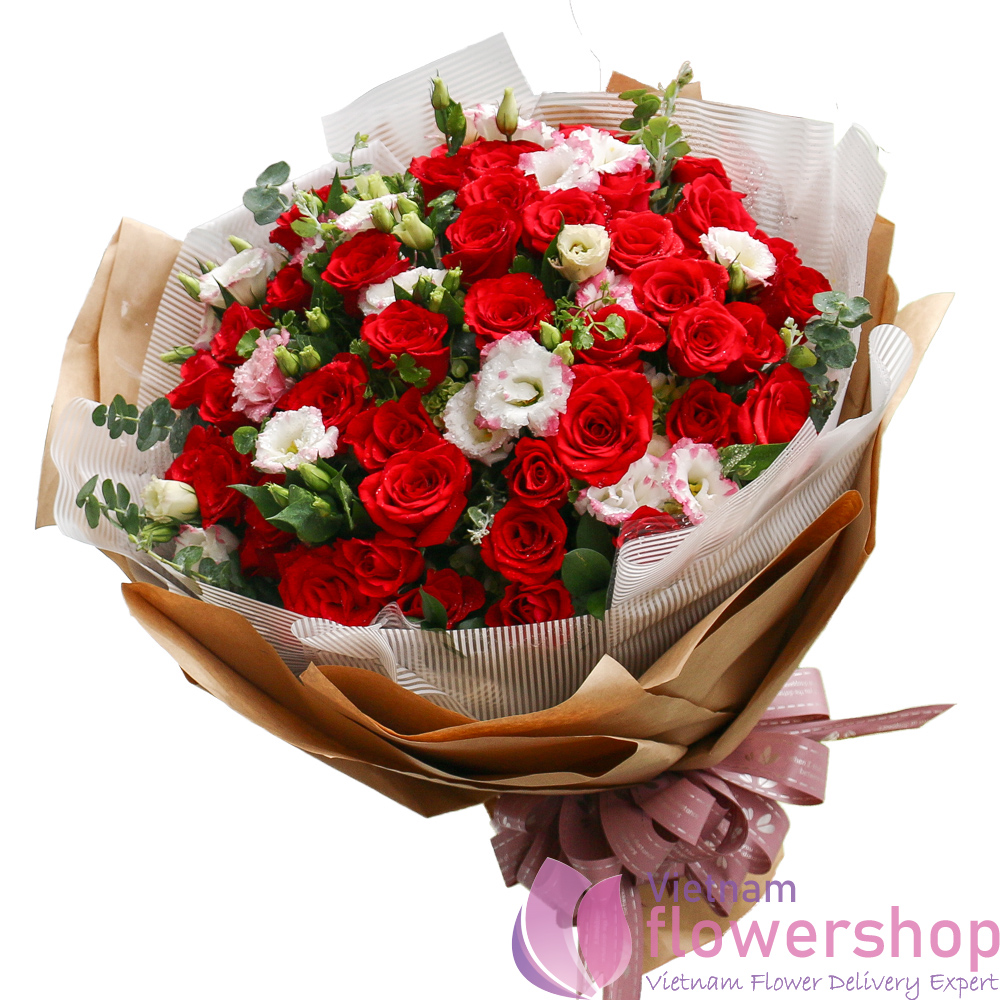| Kind of flowers | Red roses, lisianthus |