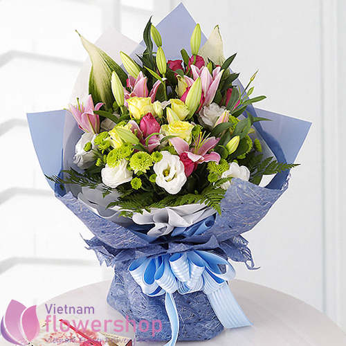 Mixed flowers bouquet for birthday in Vietnam