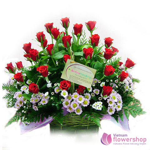 Red roses basket free shipping in Vietnam