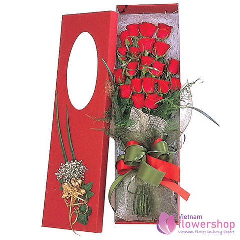Red roses in box free shipping Hanoi Vietnam