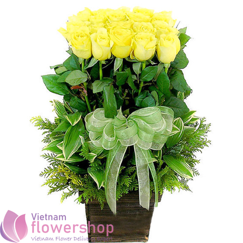We put together yellow roses to make up the romantic arrangement. This jovial dance of flowers creates a magnificent mood in the home or office space, a symphony of happy tones and features. This arrangement sings with joy, and trongly resonates with all our senses. We look at these premium, sunny yellow roses and immediately smile – feeling gratified, positive and loved. The bouquet gives of an infectious joy, sure to strike even on the gloomiest day.