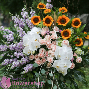 | Kind of flowers | Sunflower, Pink Roses, Delphinium, Phalaenopsis orchids, Hydrangea |
