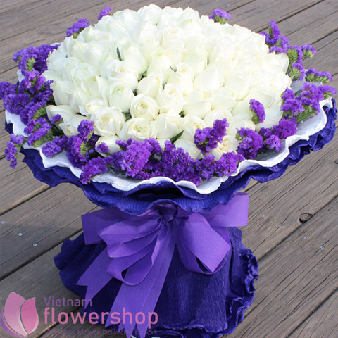 White bouquet of roses in Vietnam Flower Shop
